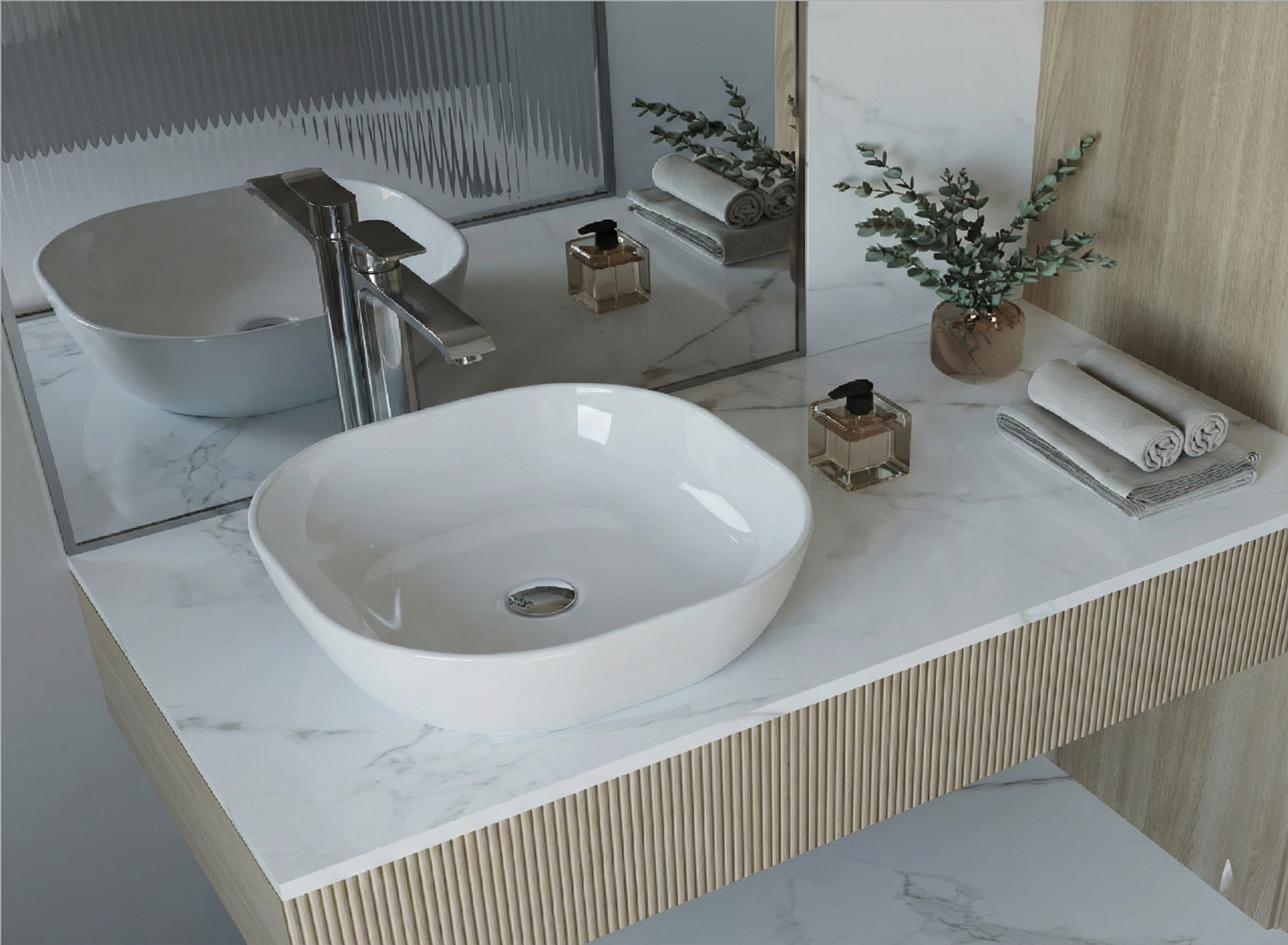 حوض فوق سطح افقي 42 * 42 سم سانيبيور ابولو ابيض