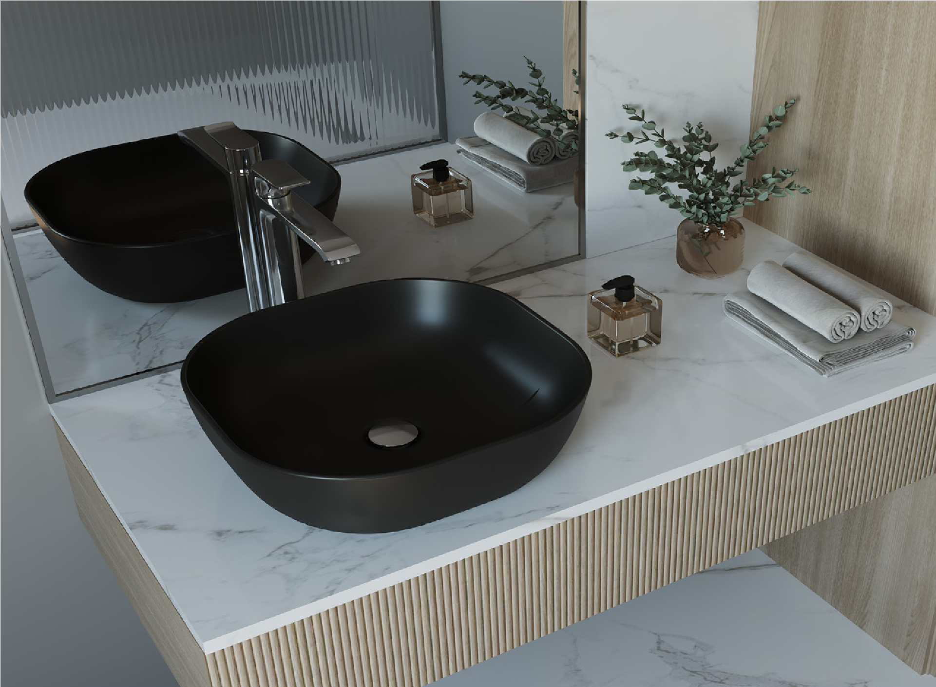 حوض فوق سطح افقي 42 * 42 سم سانيبيور ابولو اسود