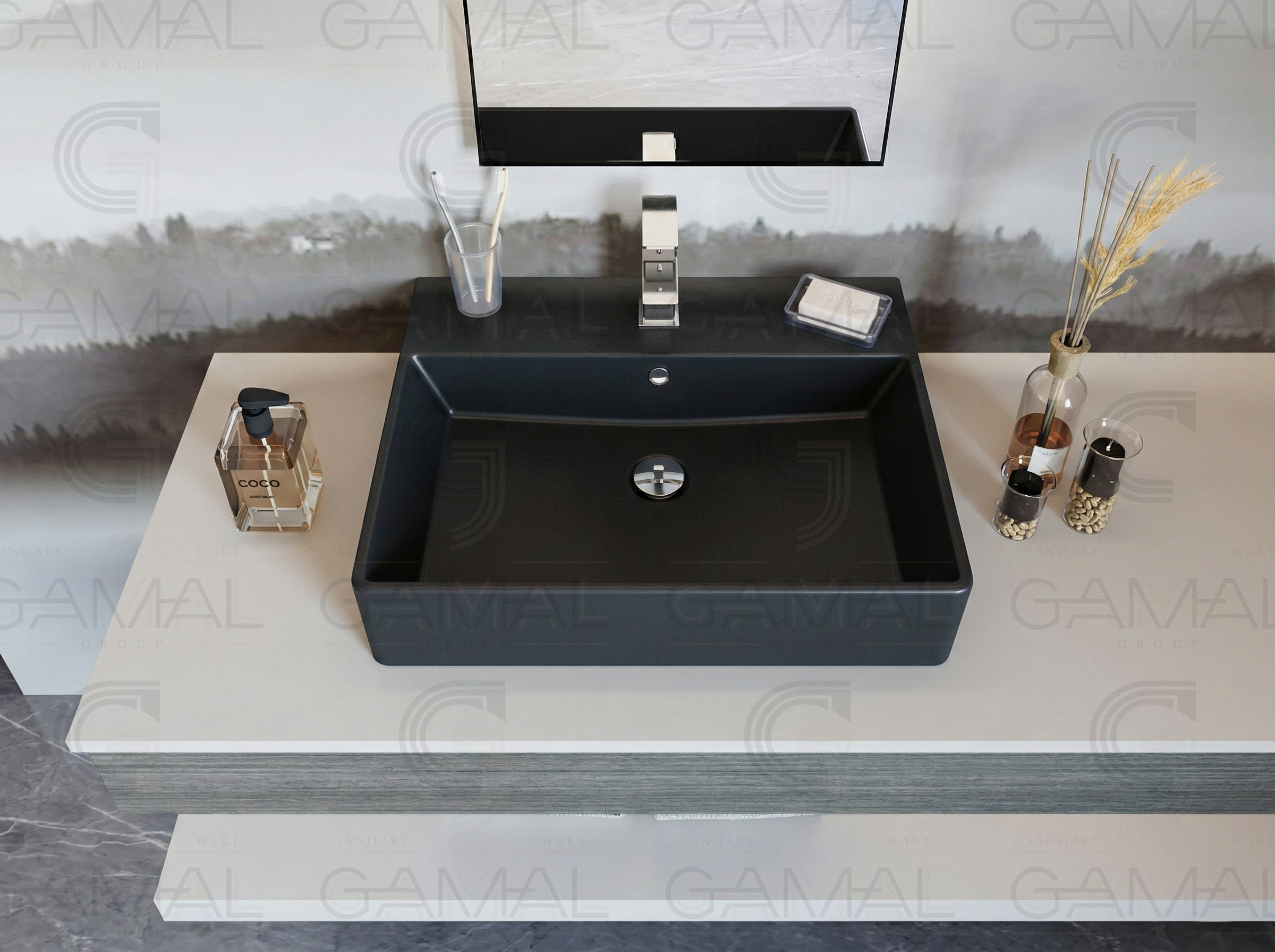 حوض فوق سطح افقي 60 سم بالفايظ بفتحة الخلاط سانيبيور كيبلر اسودحوض فوق سطح افقي 60 سم بالفايظ بفتحة الخلاط سانيبيور كيبلر اسود