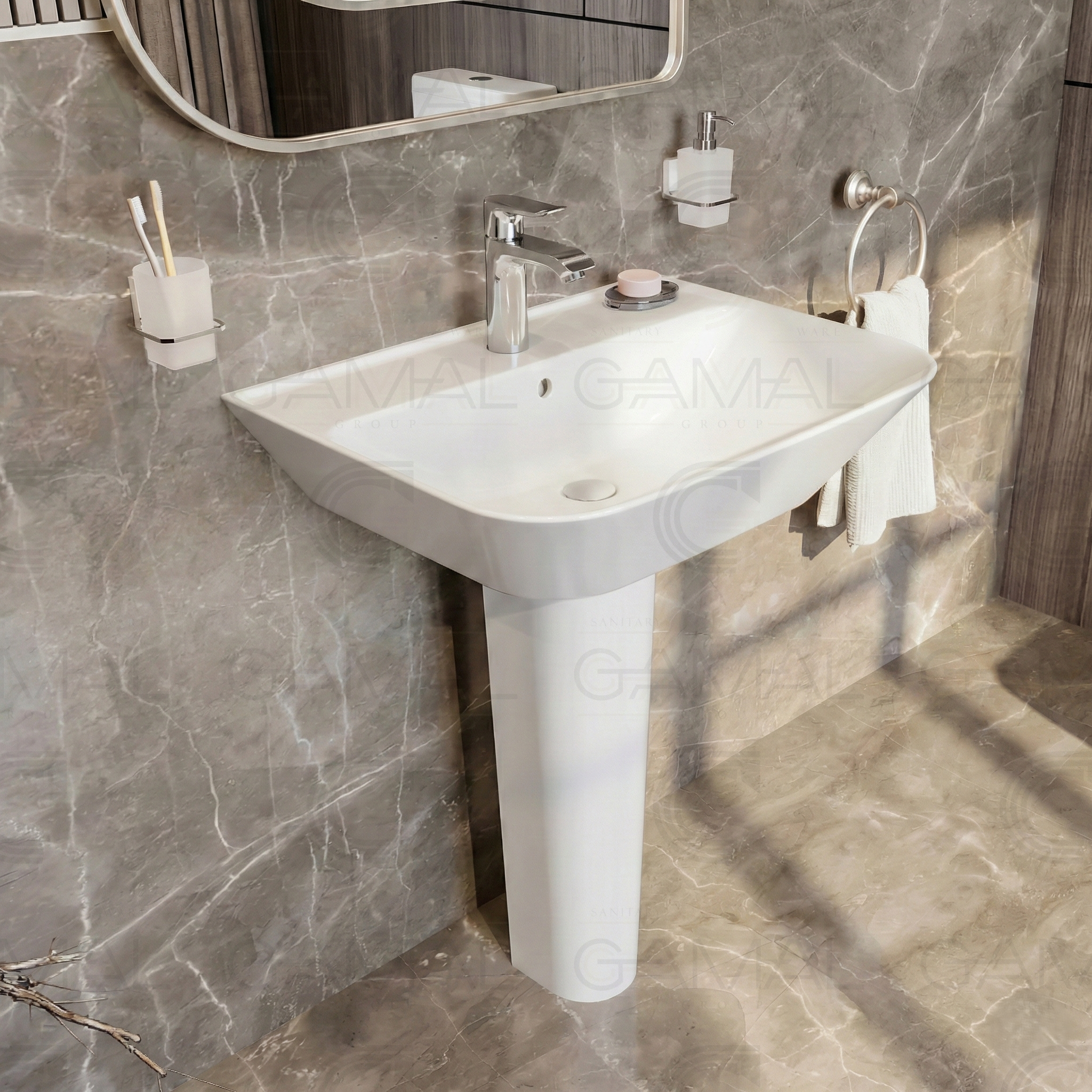 حوض 65 سم بالعامود كامل سانيبيور ماجنيوس ابيض