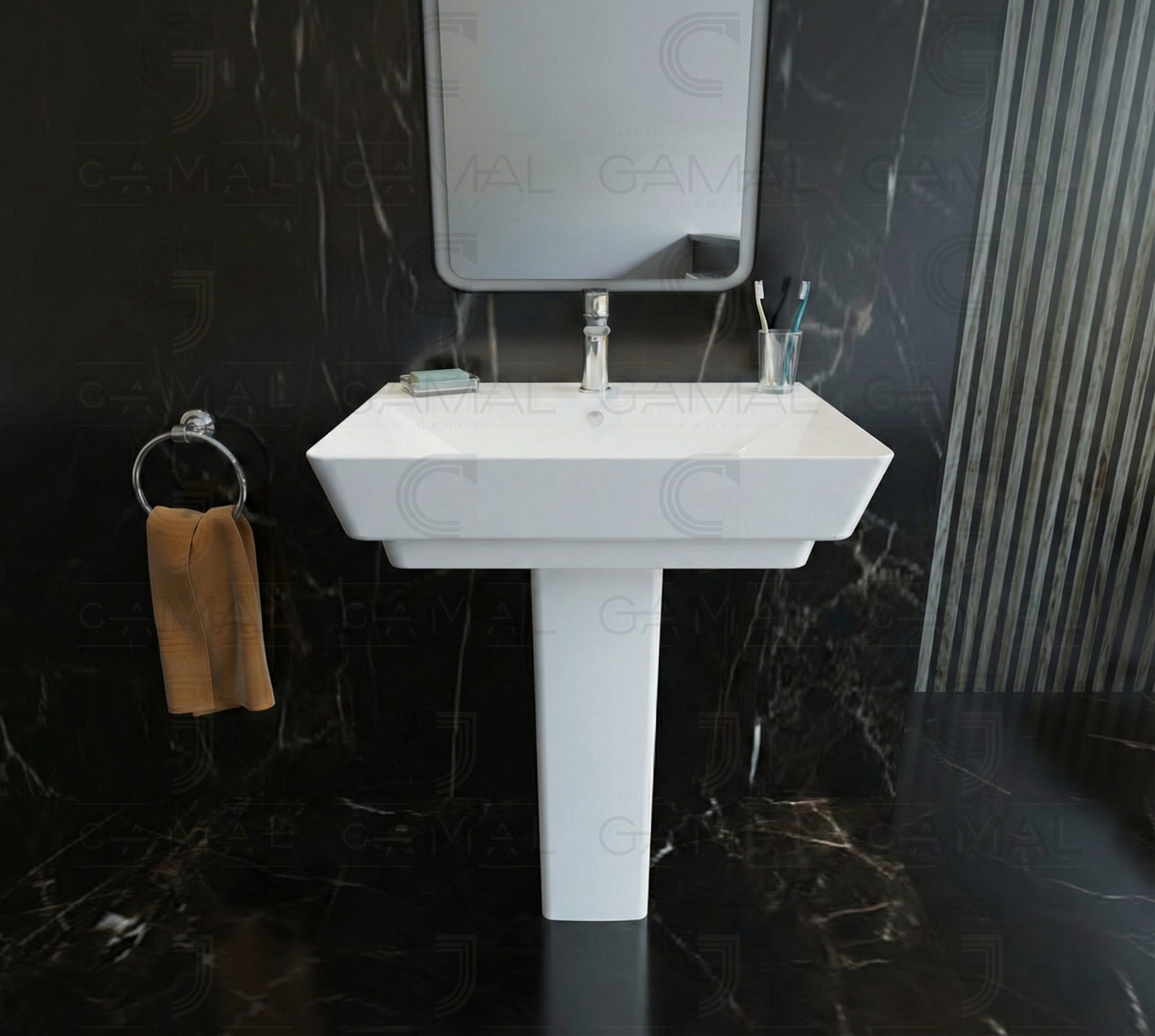 حوض 80 سم بالعامود كامل سانيبيور كيبلر ابيض